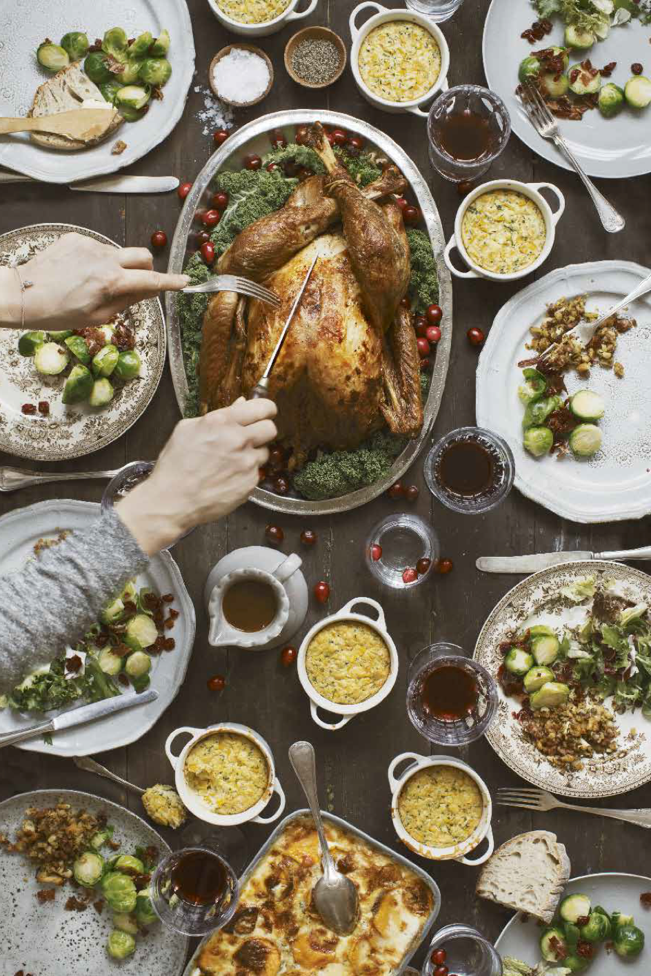 En klassisk Thanksgiving-middag med helstekt kalkon, äpple- och salsiccia stuffing och skysås. Nedan hittar ni iallafall alla recepten som behövs för att lyckas med er Thanksgiving middag – eller varför inte servera som juldagsmiddag istället. Det är då många i Sverige har som tradition att äta kalkon.