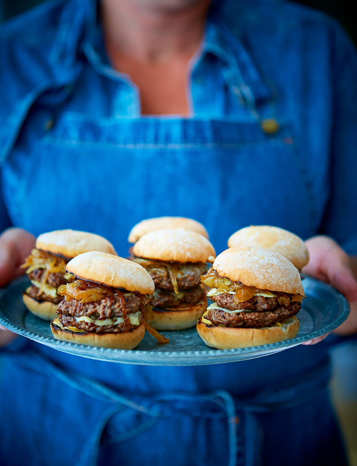 - Värm en panna riktig het – t ex en gjutjärnspanna som klarar riktig hög temperatur. Lägg ner några bollar köttfärs, och tryck till dem så att de plattas ut. Salta och peppra direkt. Stek i ungefär 1 minut, vänd sedan på biffarna. Salta och peppra igen och lägg på en skiva ost. Stek i ca 30 sekunder till.