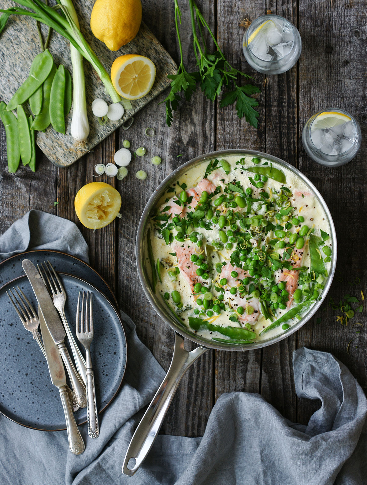 Idag bjuder vi på ännu en smarrig och enkel middagsrätt som snabbt går att tillaga. Vi kokar lax tillsammans med fräscha gröna grönsaker i en krämig citronsås – en rätt som passar att servera till det mesta. Kanske en fräsch sallad, rårris, potatismos, quinoa eller pasta?