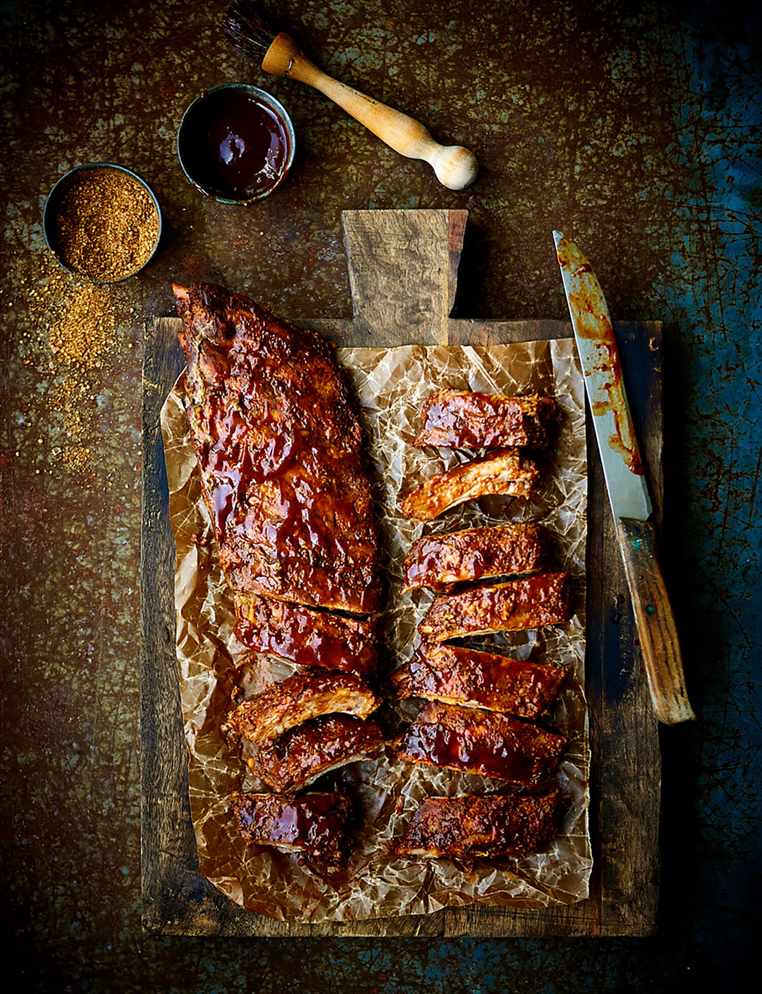 Vi har många minnen från ”Backyard BBQ´s” från vår uppväxt i USA. Det grillades hamburgare, majskolvar, stora steaks – och ribs! Just ribs är standard på en amerikansk barbeque. Idag bjuder vi på ribs som smaksatts med en senap- & ingefärsrub samt en härlig sliskig whiskey glaze. Glöm inte servetterna – dessa är härligt kletiga då vi dränker dem i en god sötsliskig och rökig barbequesås.