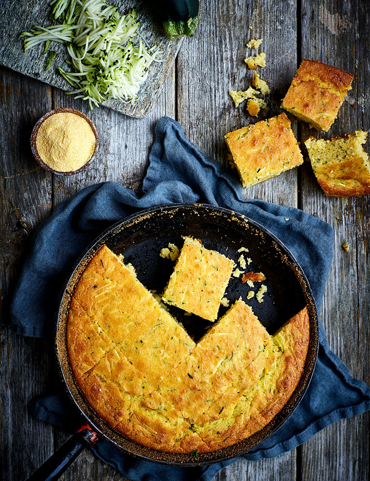 Majsbröd ”Cornbread” är typisk för amerikanska södern – och en favorit hemma hos oss. Gärna rykande varm direkt ur ugnen med en redig klick smör. Här har vi lagt till riven zucchini som gör den ännu saftigare.Foto Lisa Björner