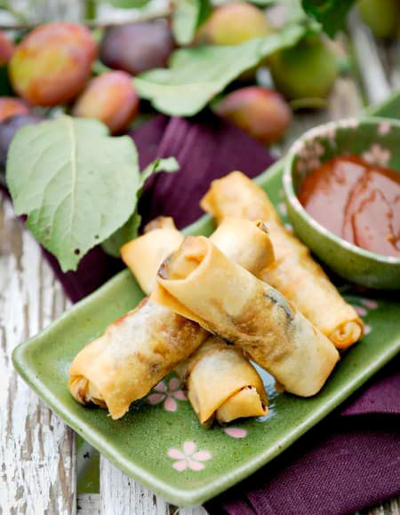 - Värm oljan till 170–180 grader. Fritera några vårrullar åt gången i oljan tills de är gyllenbruna. Låt rinna av något på hushållspapper. Servera med plommonsåsen.