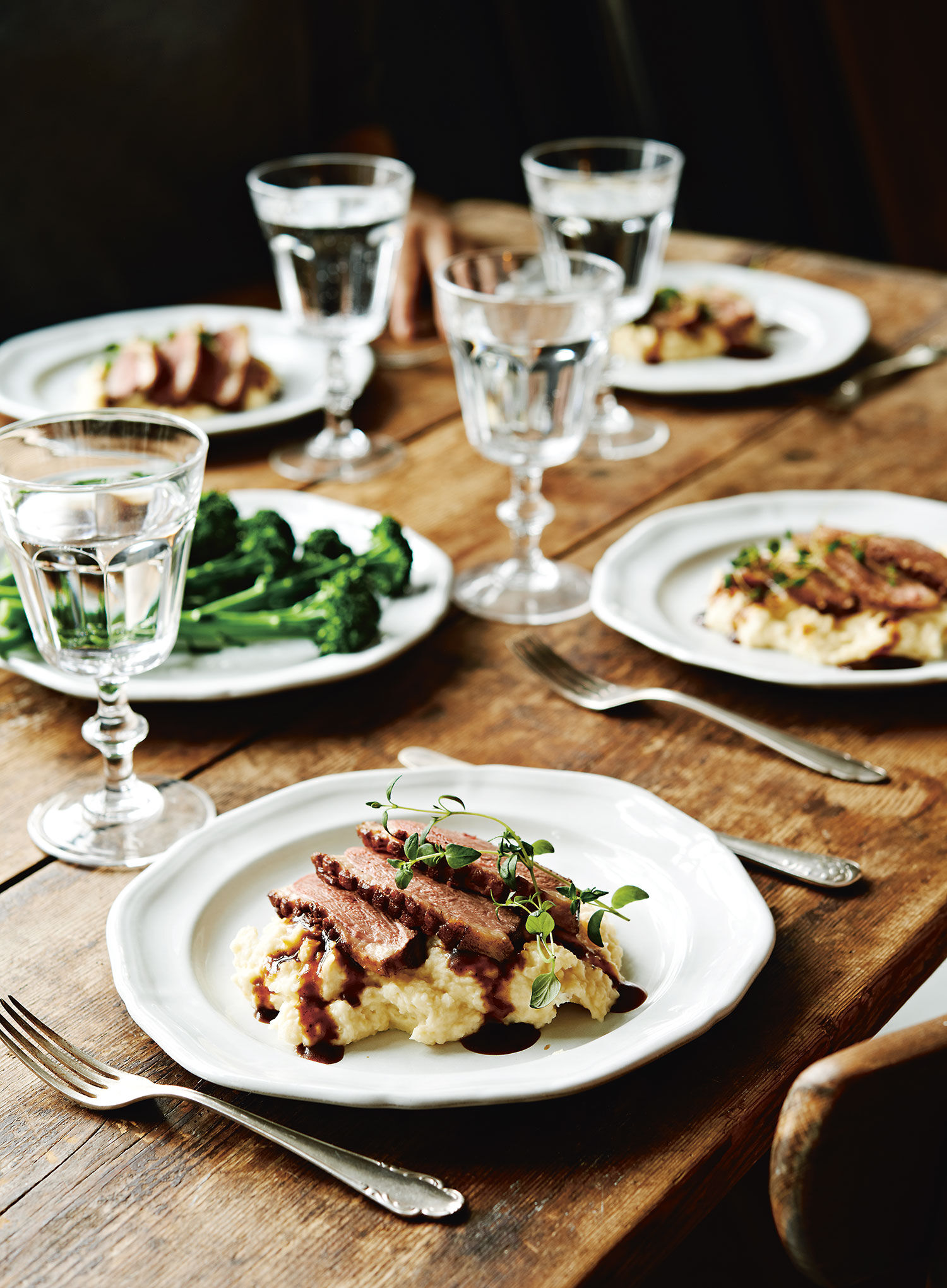 Det här receptet kommer från vår bok ”Till bords med Systrarna Eisenman”. Anka, balsamicosås och en ljuvlig potatispuré med karamelliserad lök och äpple som passar perfekt till en trevlig helgmiddag. Alltså den här potatispurén – lova oss att ni provar den. Den är verkligen en smakupplevelse!