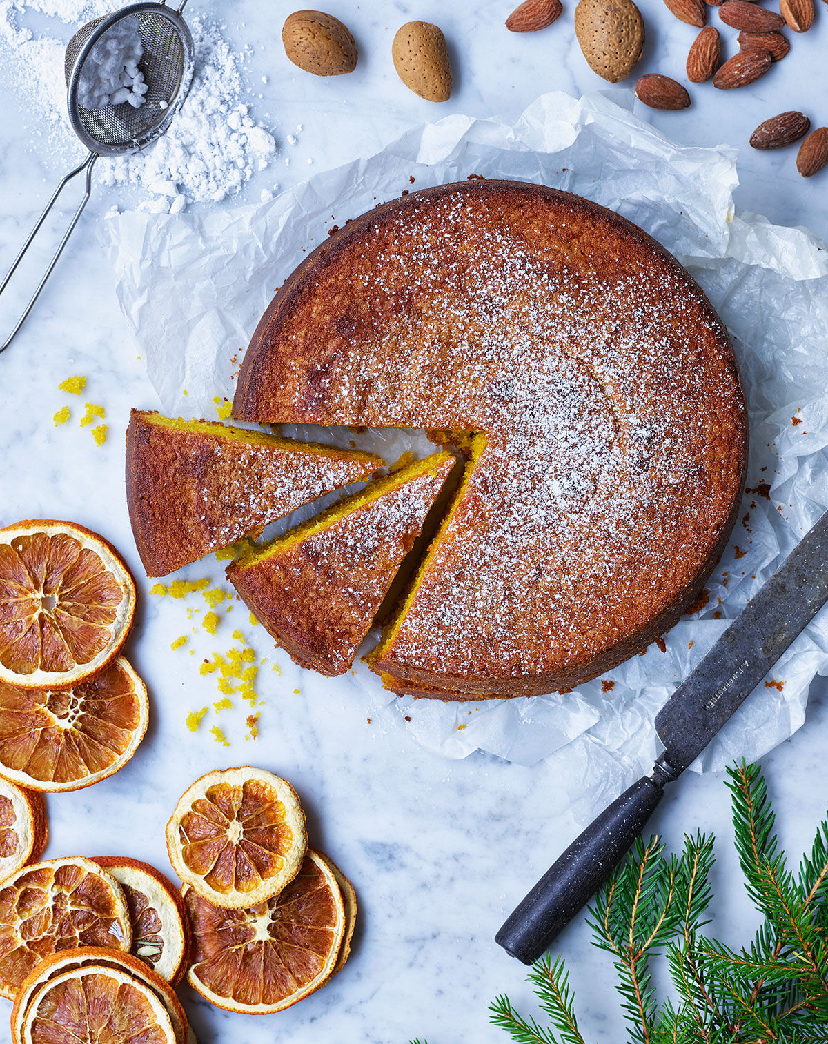 En julifierad version av polentakaka med saffran, mandel, apelsin och citron. Perfekt som sött till frukost eller fika.