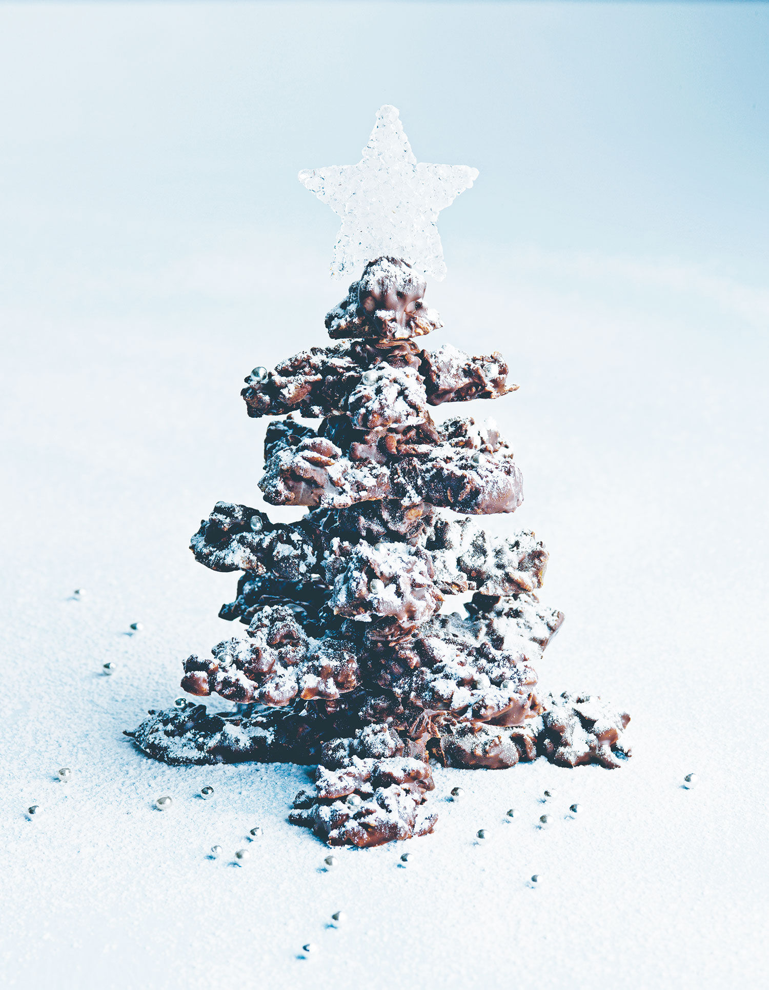 En vacker och god julgodis bjuder vi på idag – chokladgran med torkad frukt, nötter och frön! Receptet kommer från vår bok Vinterns söta.