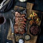 Helstekt oxfilé med svart olivröra, färska fikon och blomkålspuré