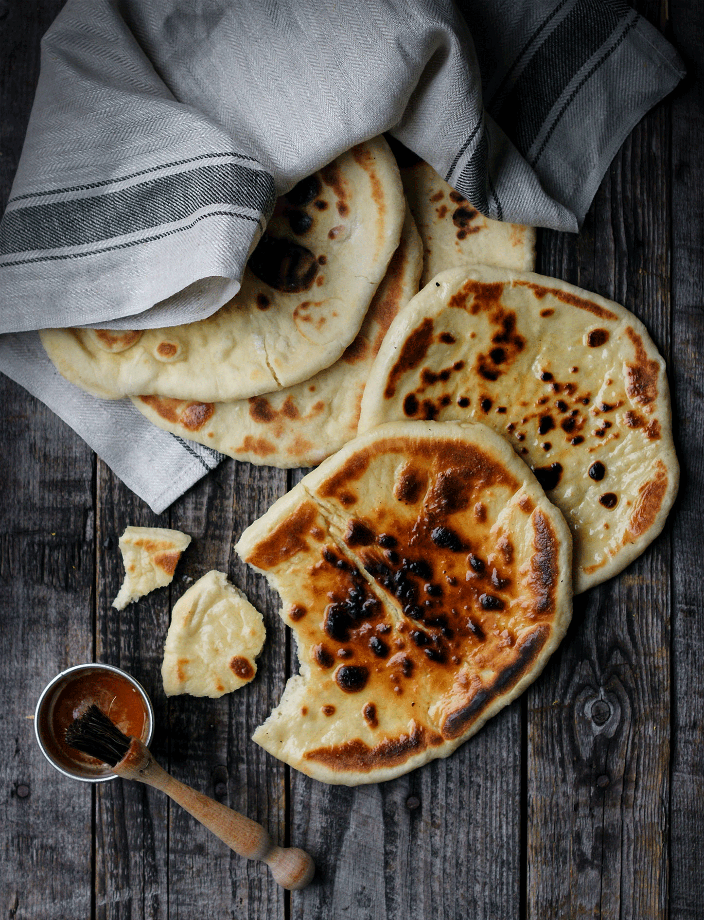 Naan är ett indiskt bröd som påminner om vårt mjuka tunnbröd men det är något tjockare. Traditionellt bakas brödet i en speciell lerugn, men det går lika bra att grädda det i en stekpanna eller i en vanlig ugn. Här är ett superenkelt recept som ger fantastiskt goda naanbröd. Vi brukar baka dem när vi ska äta indiskt – barnen använder brödet istället för bestick för att skopa upp de goda såserna.