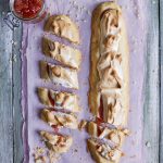 - Ta upp degen på ett mjölat bakbord. Tryck ut degen till en pizzabotten och lägg på ett bakplåtspapper. Lägg pizzabotten på den varma plåten och grädda mitt i ugnen i ca 6 – 8 minuter.