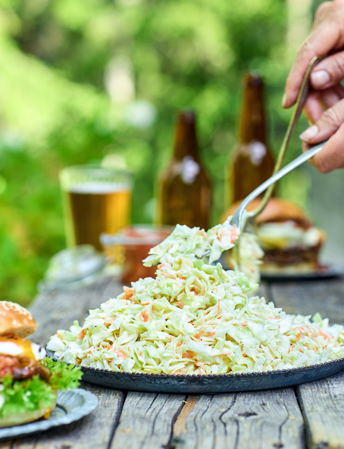 Efter du har smakat denna cole slaw kommer du aldrig vilja äta någon annan. Hemligheten är att riva rå lök i dressingen.Foto Lisa Björner