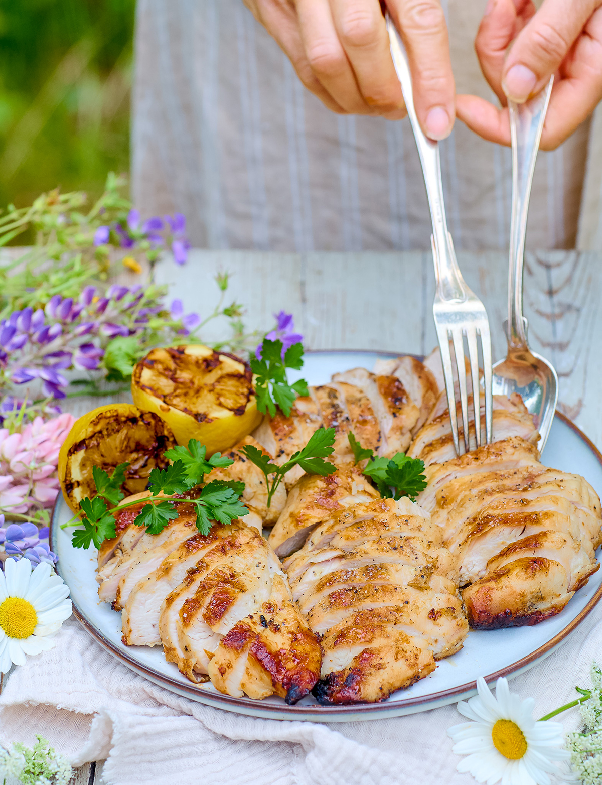 En smakrik rätt som lyfter fram det bästa av enkla men smakrika ingredienser där syrlig citron möter pepprig ingefära. Kycklingen kan serveras både varm och kall. Kycklingen kan antingen tillagas på grillen eller i ugnen.Foto: Lisa Björner