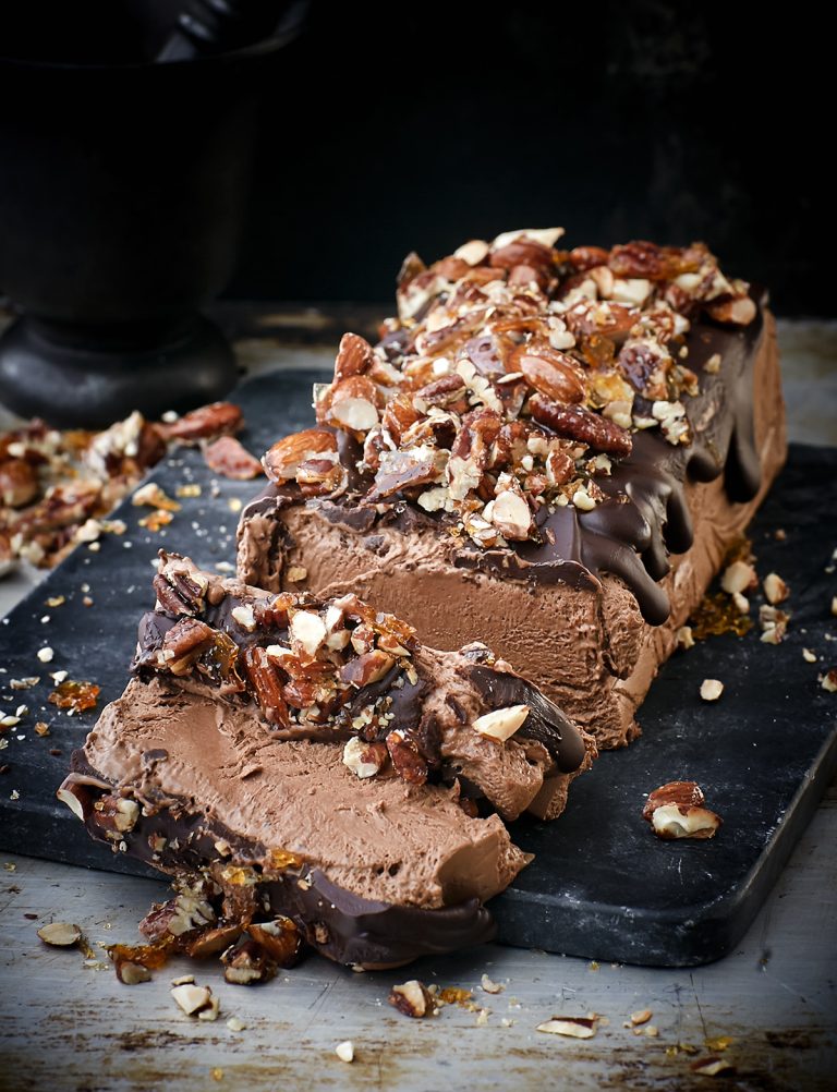Chokladsemifreddo med chokladganache och karamelliserade nötter