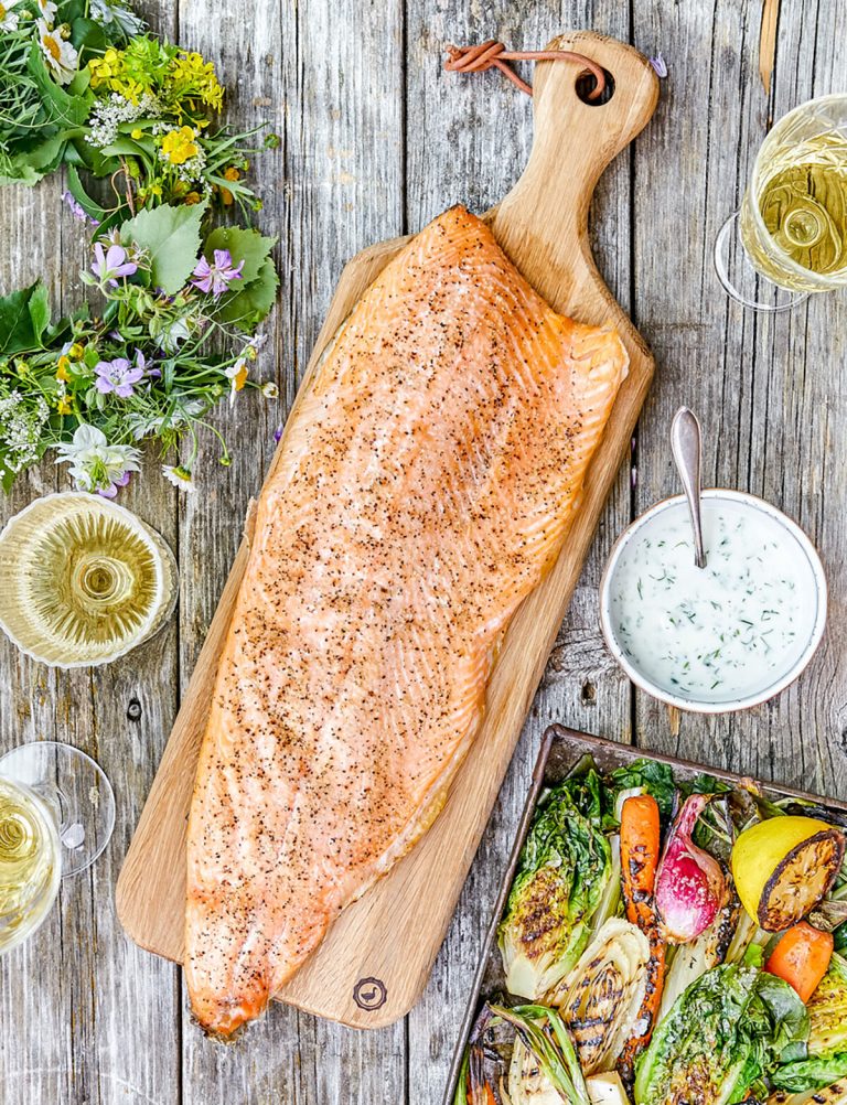 Grillad laxsida med krämig och sötsyrlig dillsås
