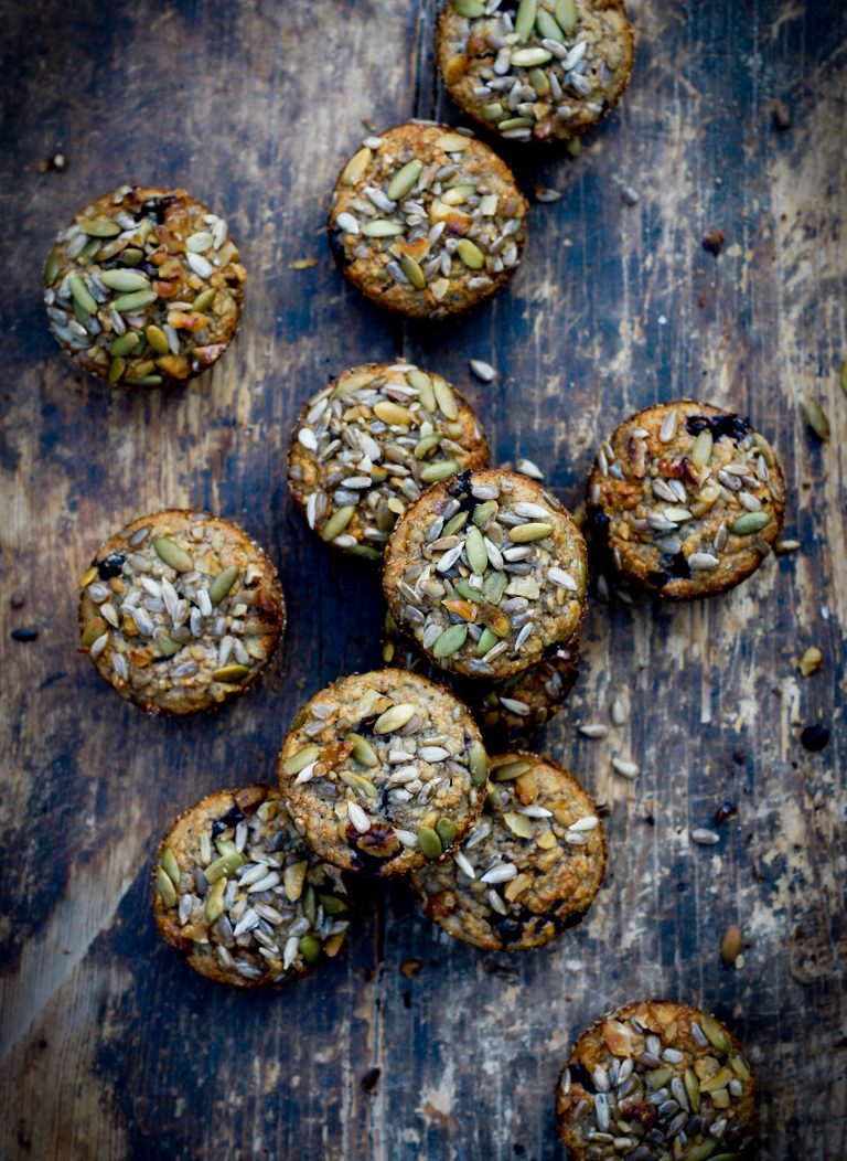 Breakfast bananmuffins med blåbär och nöt- och fröströssel
