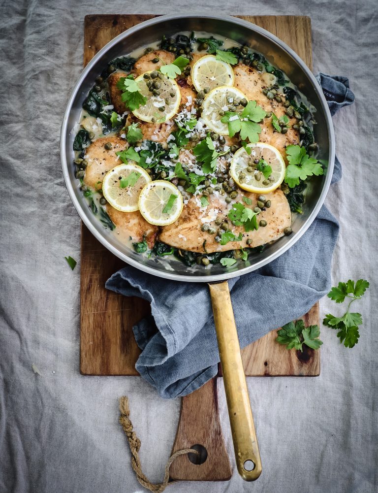 Kyckling piccata med citron och kapris samt sauterad spenat
