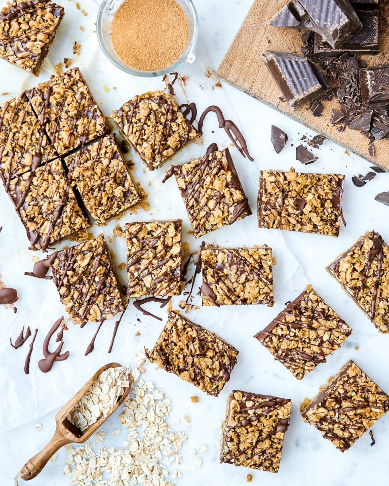 Enkla och goda rutor som man inte behöver grädda utan bara rör ihop och låter stelna i kylskåpet.Foto: Lisa Björner Tid: Antal: ca 20 bitar portioner Ingredienser: 250 g smör 1 1/4 dl farinsocker 8 ½ dl havregryn 1 ½ tsk vaniljsocker 250 g mörk choklad, hackad 2 1/2 dl jordnötssmör ¾ dl hackade jordnötter … Continued