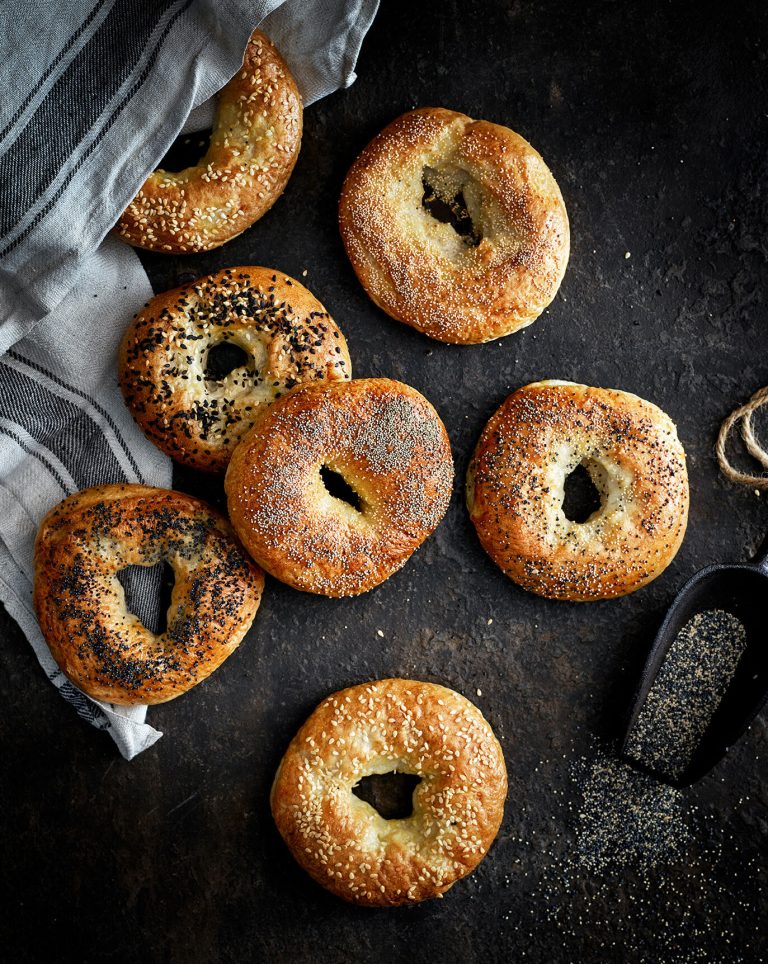 Bagels är ett judiskt bröd som finns i varenda New York-deli (och alla andra mataffärer för den delen), ofta serverat med cream cheese och rökt lax. Bagelns täta och sega konsistens får man genom att koka brödet innan det gräddas. Antal: 10 stycken portioner Ingredienser: 12 g färsk jäst 3 ½ dl vatten 2 msk … Continued
