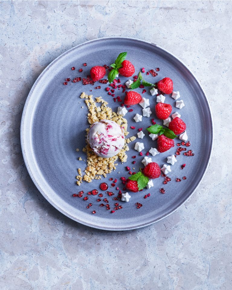 Anka med sötpotatis- & chèvrepuré, karamelliserad vitlök, picklad rödlök och portvinssås