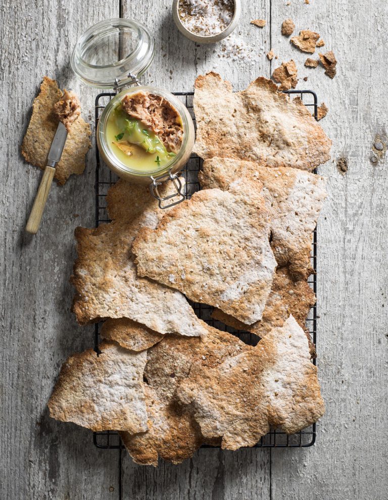 Knäckebröd med karamelliserad lök, dillfrö och havssalt