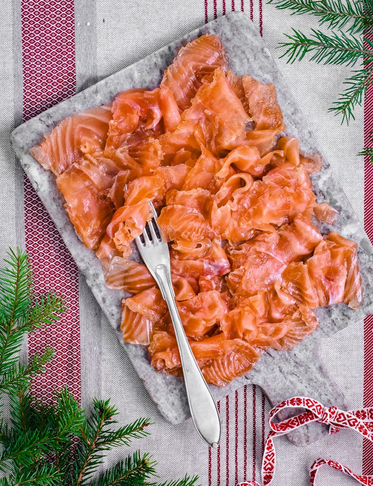 Miso tillför sälta och umami medan wasabi ger laxen ett härligt sting.Foto: Lisa Björner Tid: Antal: 8 – 10 portioner portioner Ingredienser: 1 kg laxfilé med skinn, delad i två bitar 1 dl strösocker 3 msk jodfritt salt 2 msk vit misopasta 1 – 2 tsk wasabi Gör så: Torka laxfiléerna med hushållspapper, putsa dem … Continued